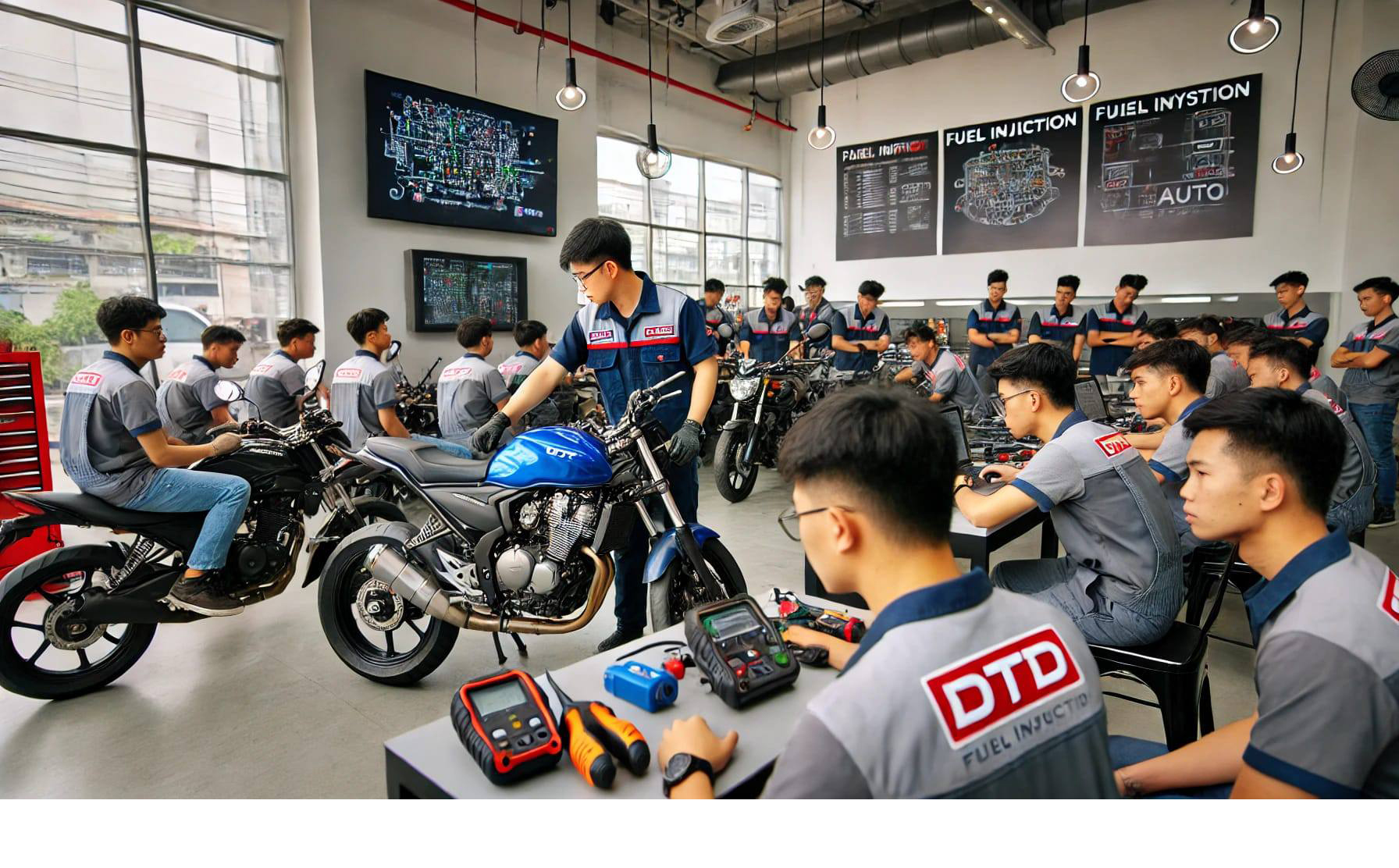 - The knowledge and experiences that gained from DTDAuto training courses will help students to keep pace with today’s breakthrough technology and learn how to safely and cost-savingly diagnose and repair modern PGM-FI motorcycles. Students will be more professionally confident thus be able to utilize their expertise to enhance their career and income.
