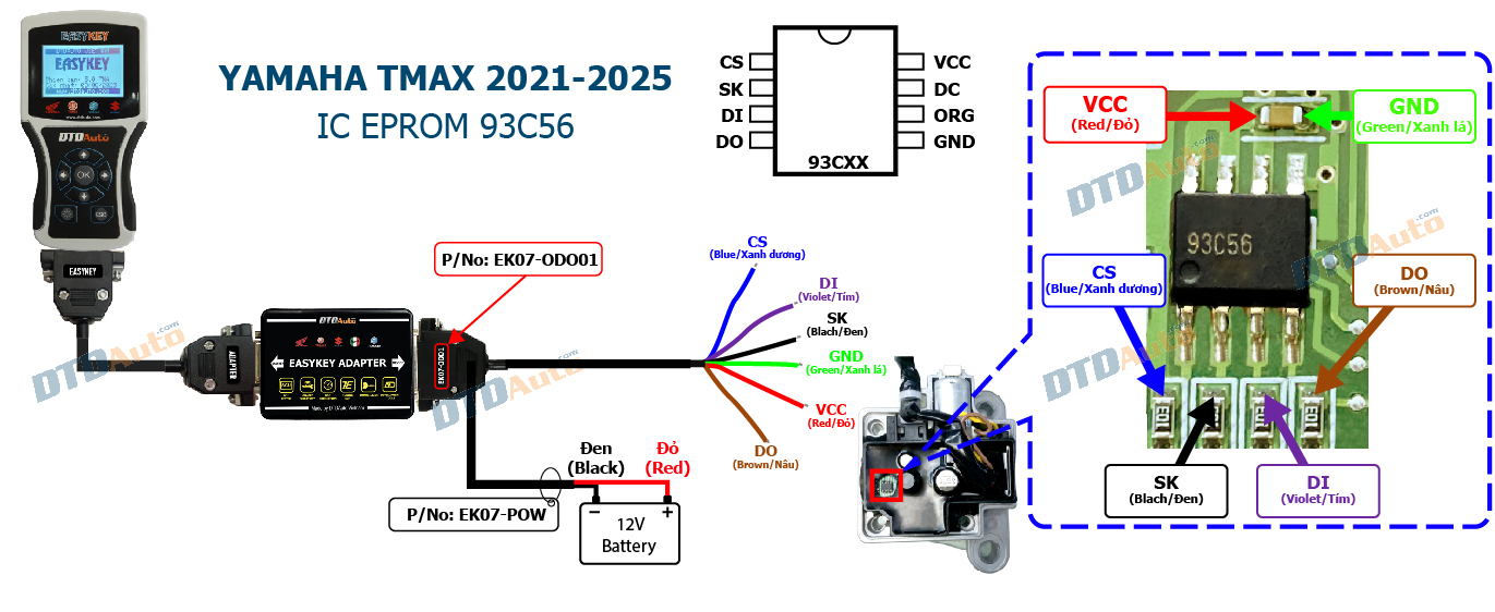 EK07-ODO is an accessory cable for EASYKEY. Used to adjust ODO value, restore original ODO data, read ODO value to repair ODO system for HONDA, YAMAHA, SUZUKI, PIAGGIO, VESPA, and read KEY ID for YAMAHA TMAX 2020-2024.